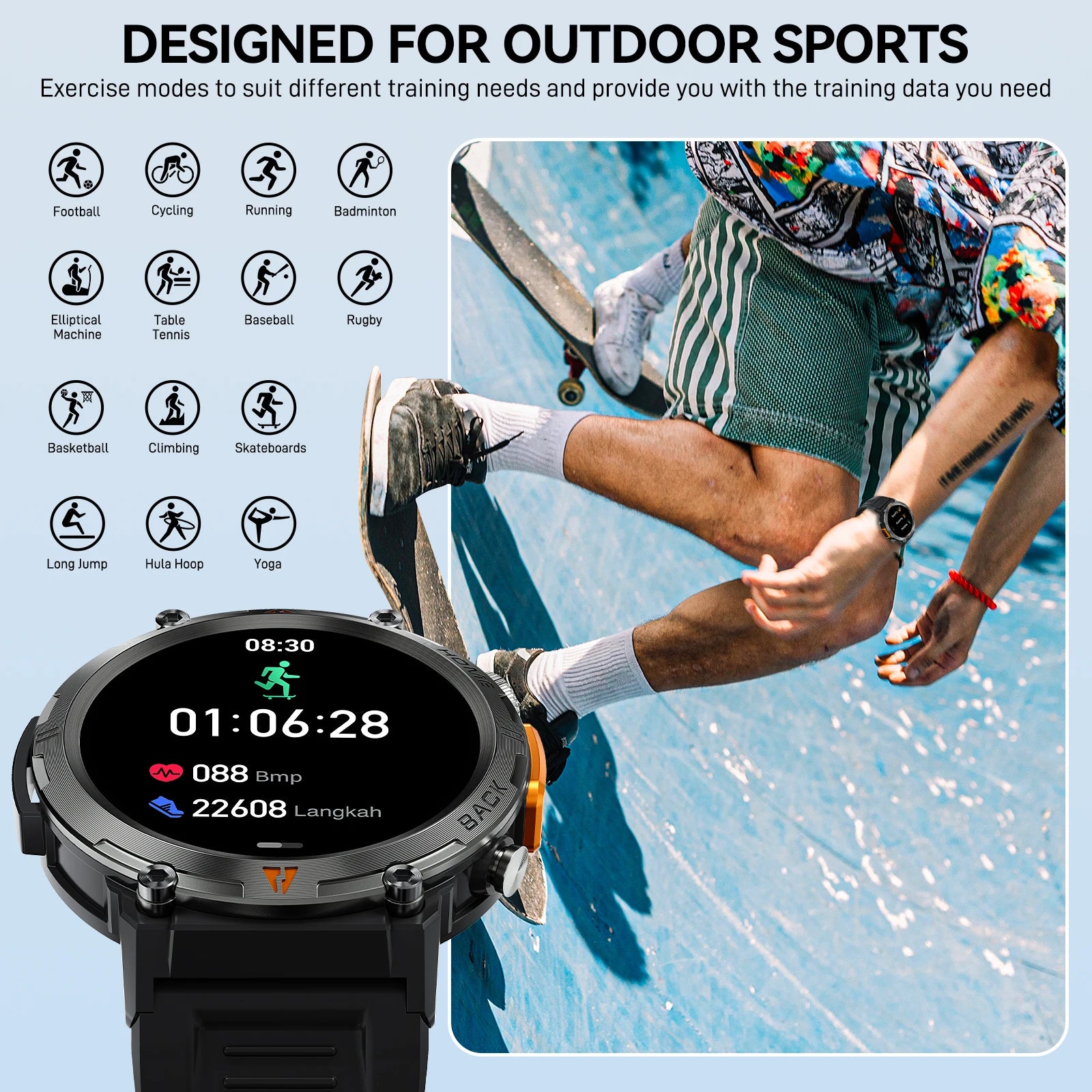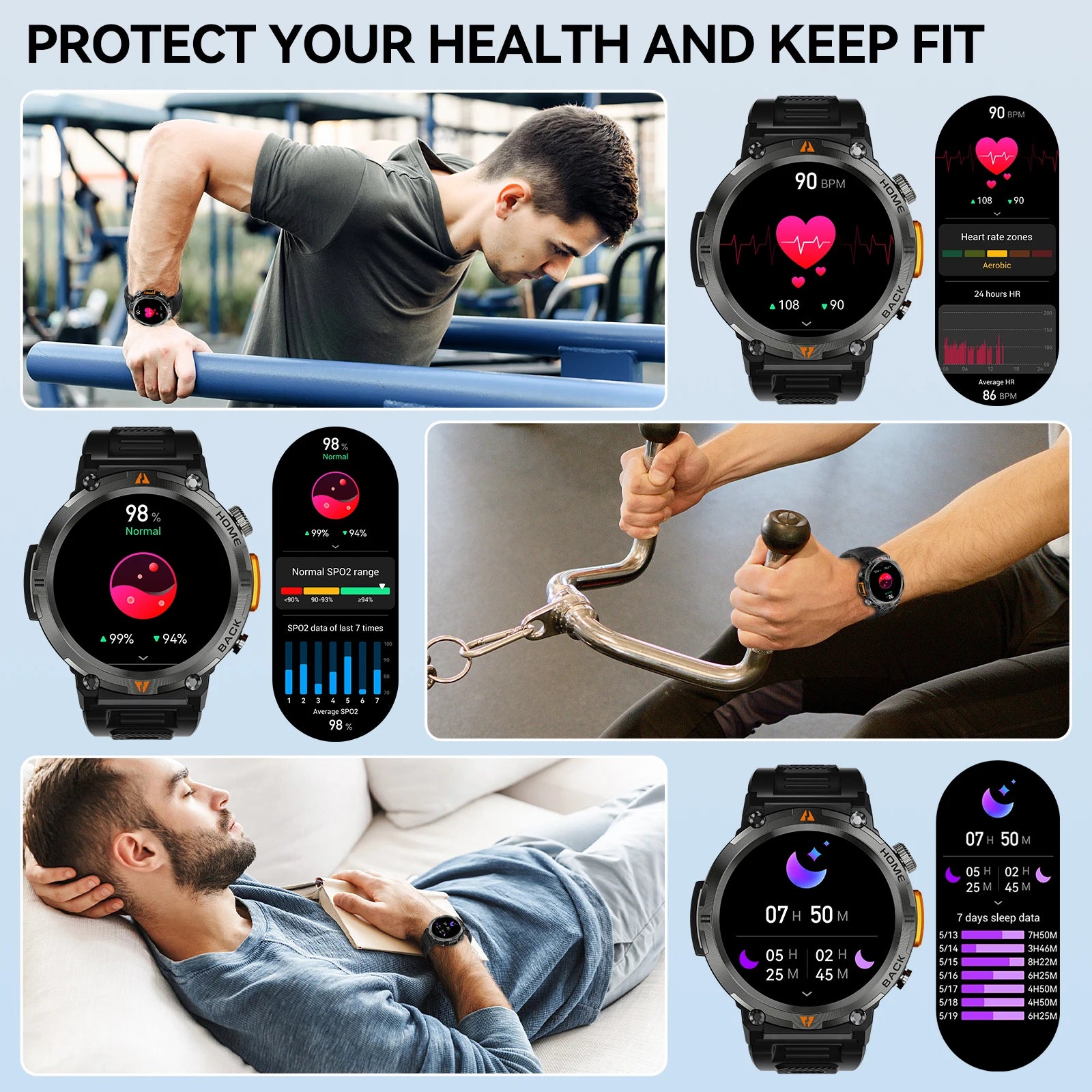 Premium Smart Watch for Men, Bluetooth Call, Full Touchscreen, Health Monitor, IP68 Waterproof, Fitness Tracker, Flashlight, Custom Faces, iOS & Android Compatible - StrengthXPhysiotherapy