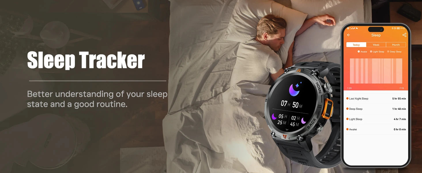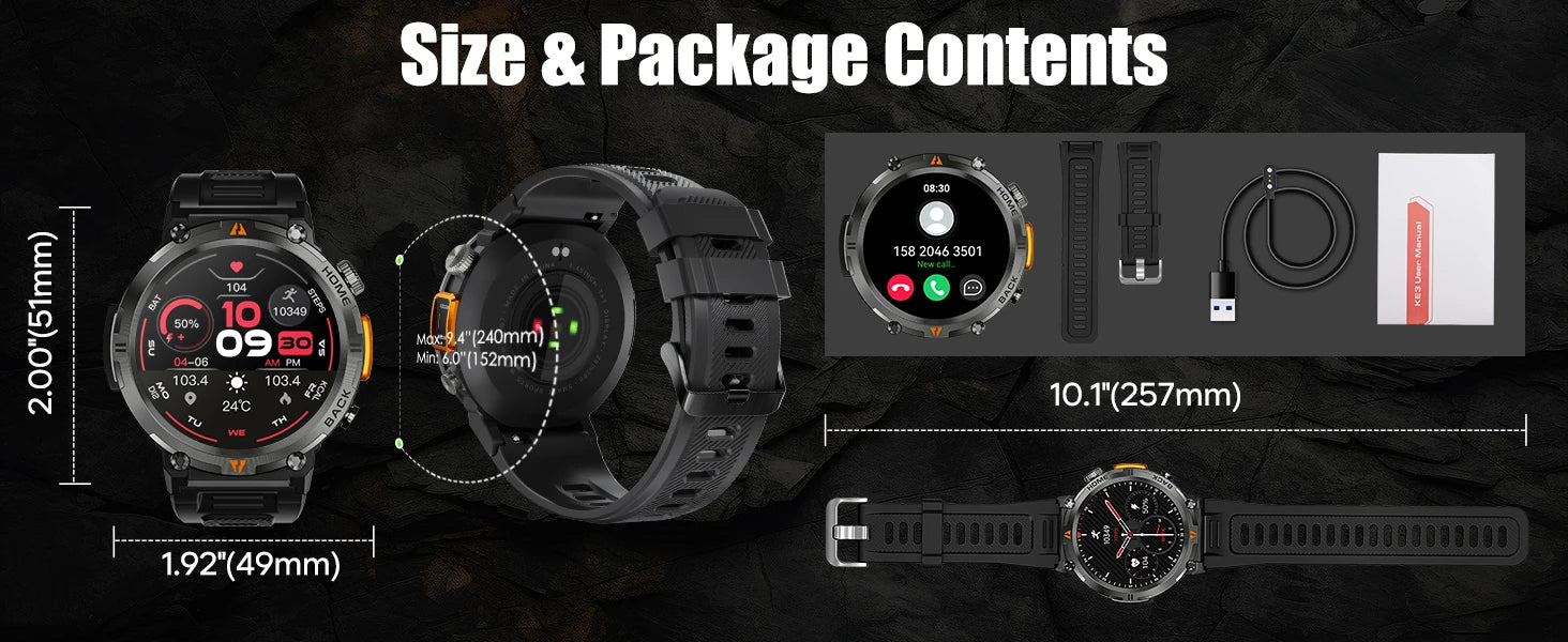 • Fitness Tracking: Monitors Steps, Distance, Calories, Heart Rate, Blood Oxygen, and Sleep