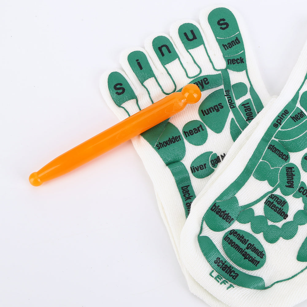 Premium Acupressure Massage Socks - 6 Pcs Reflexology Foot Therapy Set for Tired Feet, Cotton-Polyester Blend, Men’s & Women’s Sizes, Includes Massage Tools