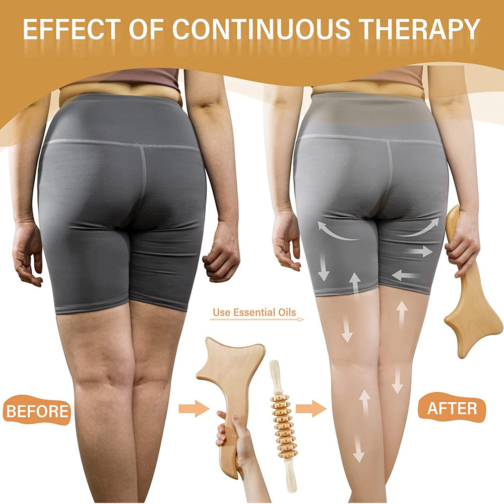 Premium 6-in-1 Wood Therapy Massage Tool Set for Lymphatic Drainage, Anti-Cellulite Fascia Massage Roller, Muscle Relaxation