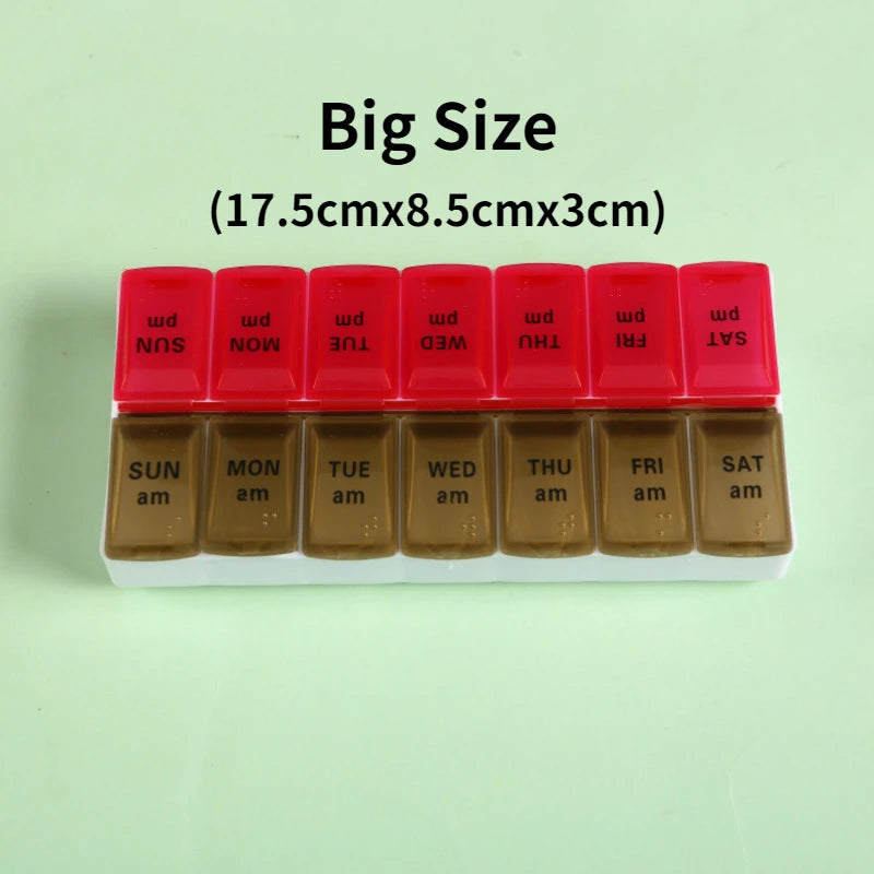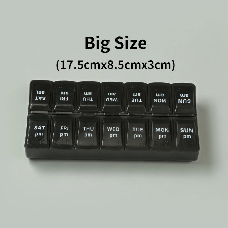 - Design: Premium 7-Day Pill Organizer with 14 separate compartments for easy medication management.