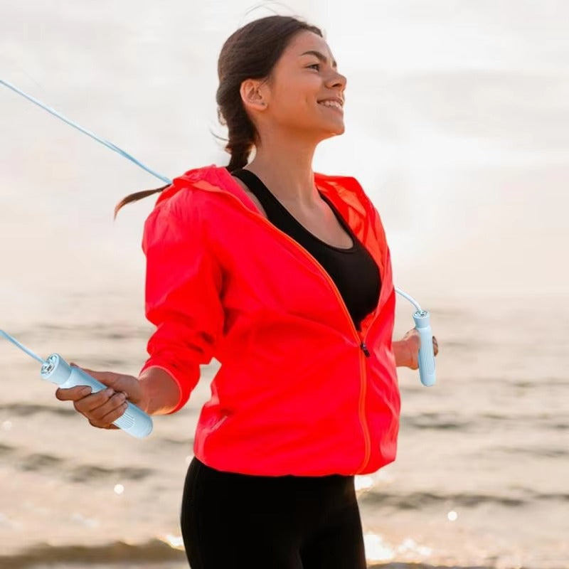 • Start with light skipping routines and gradually increase intensity for optimal fat-burning results.
